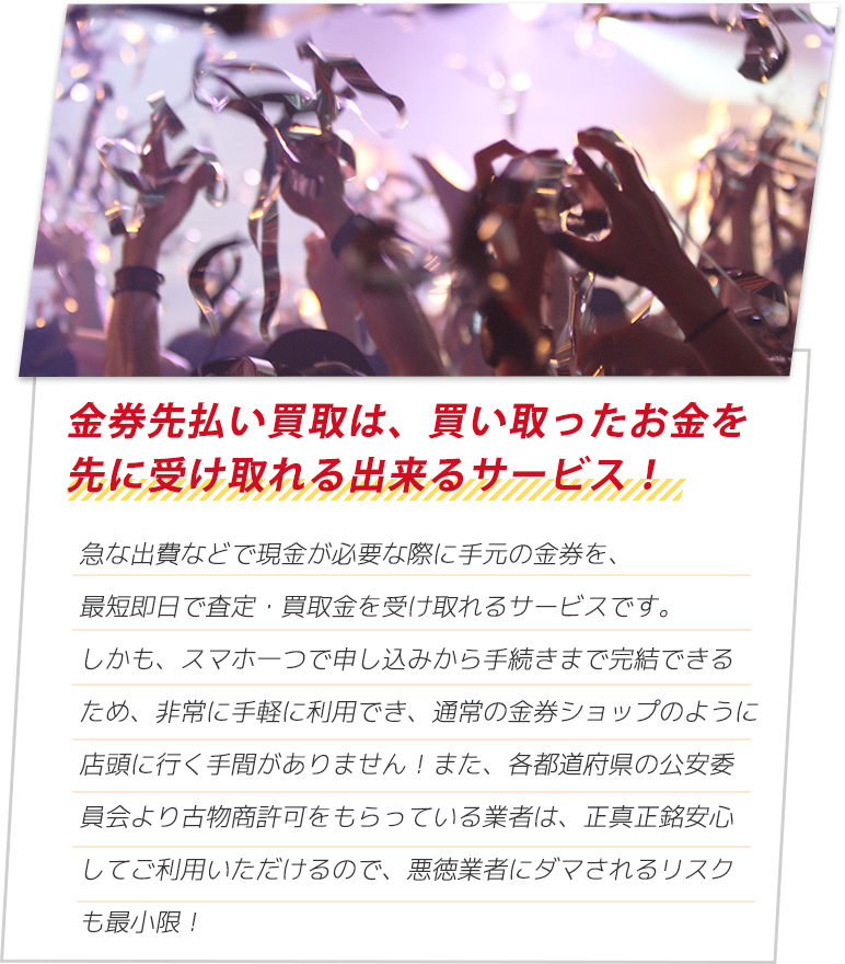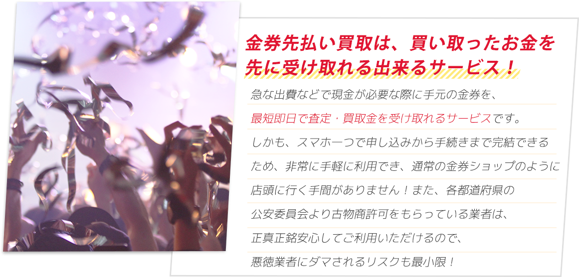 ※金券先払い買取については、各機構から注意喚起が行われています。ご利用にあたっては、リスクをご理解いただいたうえで、十分ご注意ください。